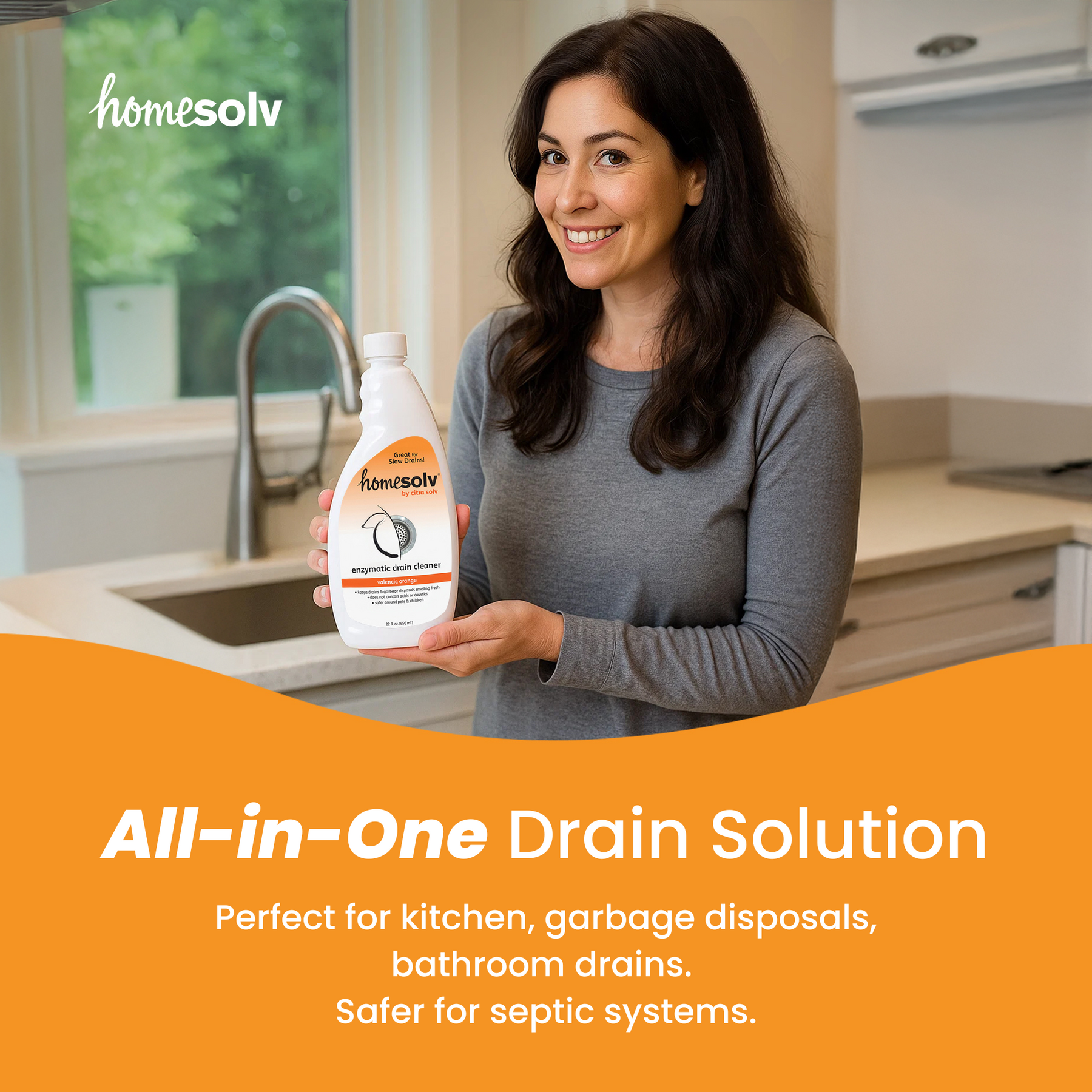 Keep your pipes clean, clear, and fresh with this powerful enzyme drain cleaner for pipes. Whether you're dealing with kitchen clogs or bathroom backups, this formula acts as a reliable kitchen drain cleaner and bathroom drain cleaner in one. The Valencia orange scent leaves behind a fresh, natural fragrance that helps eliminate unpleasant drain odors.